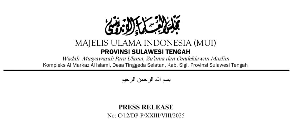 Demikian pernyataan resmi ini disampaikan sebagai bentuk tanggung jawab moral dan keagamaan MUI Sulawesi Tengah.